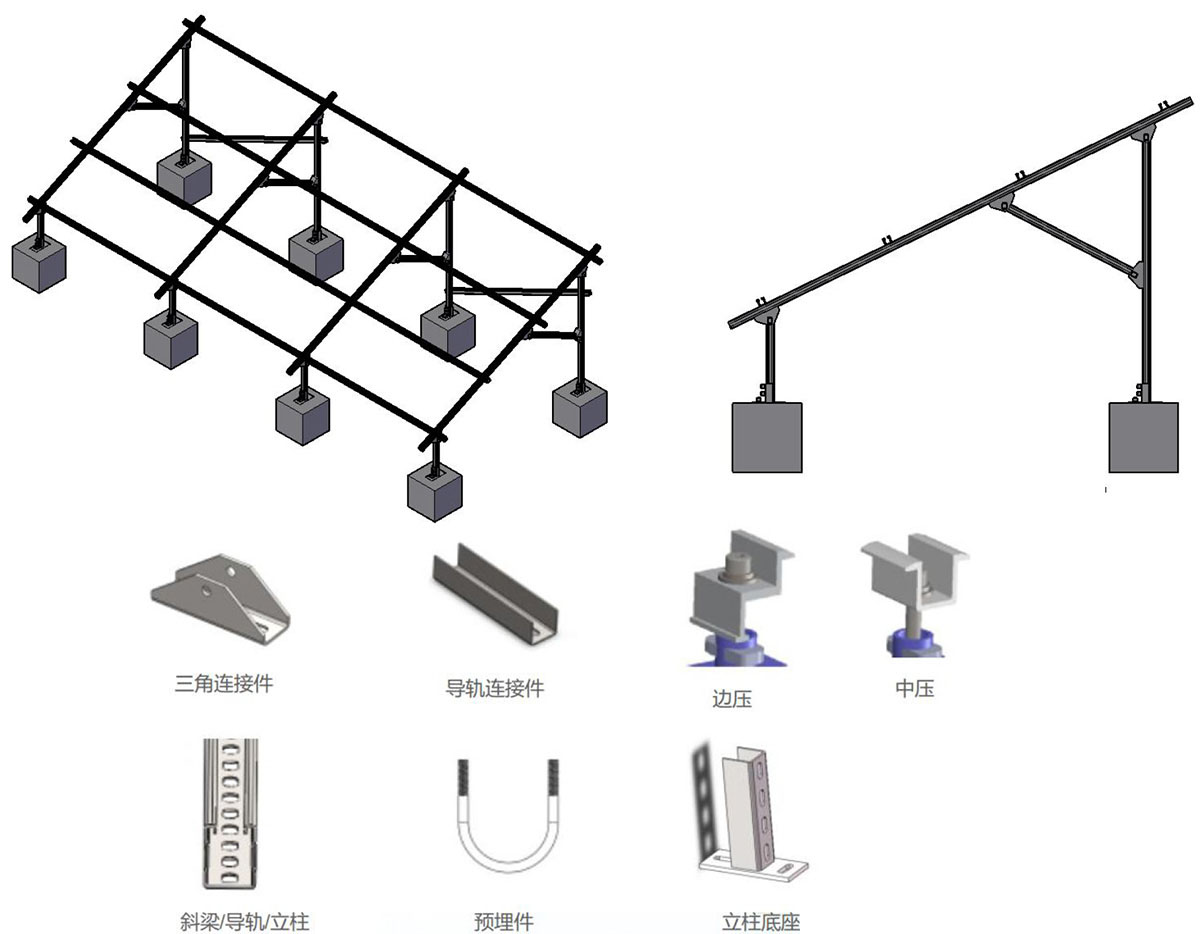 中壓塊與邊壓塊進行固定太陽能組件面板;